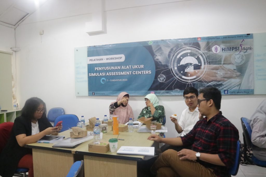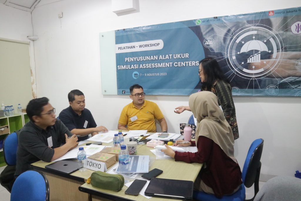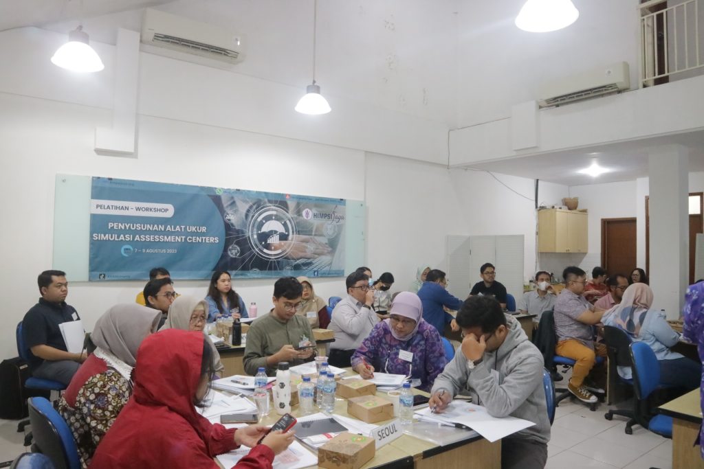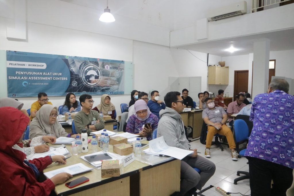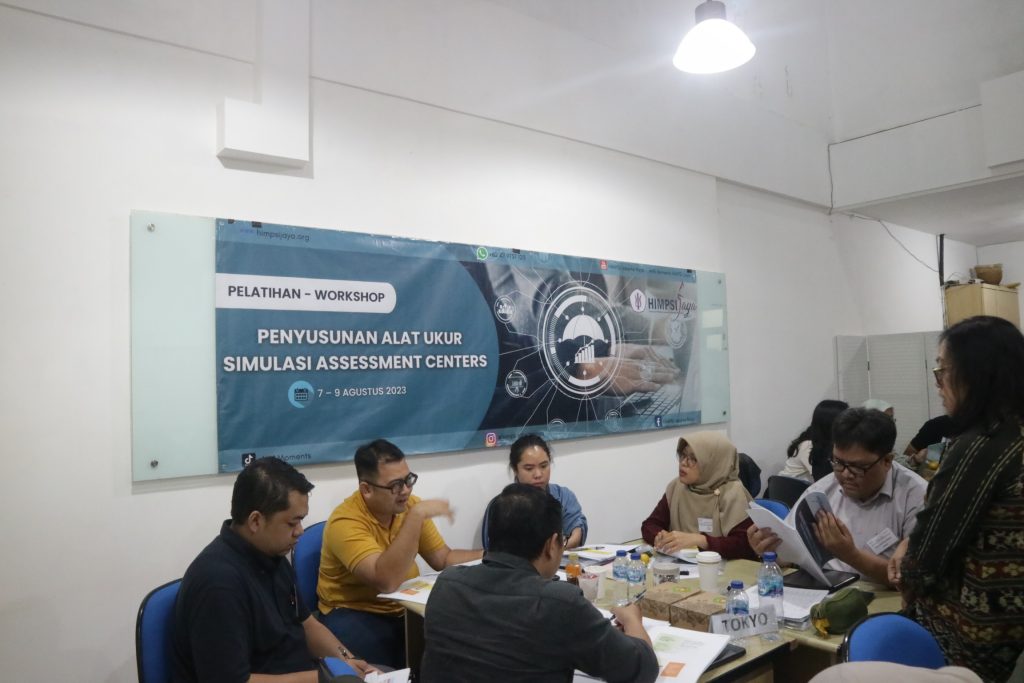HIMPSI Jaya melalui Divisi Pengembangan Kompetensi dan Pendidikan Berkelanjutan (Divisi PK & PB) mengadakan workshop penyusunan alat ukur simulasi Assessment Centers batch 1 pada 7-9 Agustus 2023 yang lalu.  Kegiatan tersebut dipandu oleh tim fasilitator berpengalaman dari HIMPSI Jaya dan diikuti oleh sebanyak 24 orang peserta. workshop ini bertujuan untuk meningkatkan kompetensi penyusunan alat ukur simulasi dalam konteks Assessment Centers. Hal ini sejalan dengan salah satu misi HIMPSI Jaya, yaitu memfasilitasi pengembangan kompetensi para anggota.