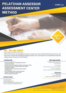 HIMPSI JAYA kembali menyelenggarakan Assessor Assessment Center Method (Batch #11) bagi asesor dan calon asesor yang berlatar belakang pendidikan psikologi, untuk membangun dan meningkatkan kompetensi sebagai Assessor Assessment Center Method.